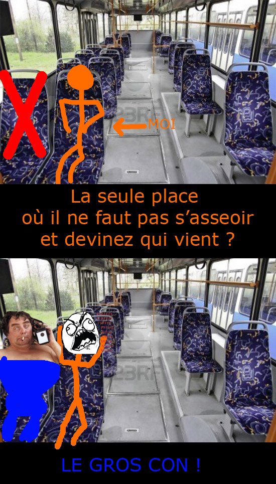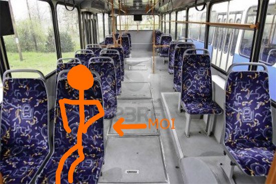 Prenons un cas (avec variantes) de bons usages dans le bus avec le respect de l’espace vital :